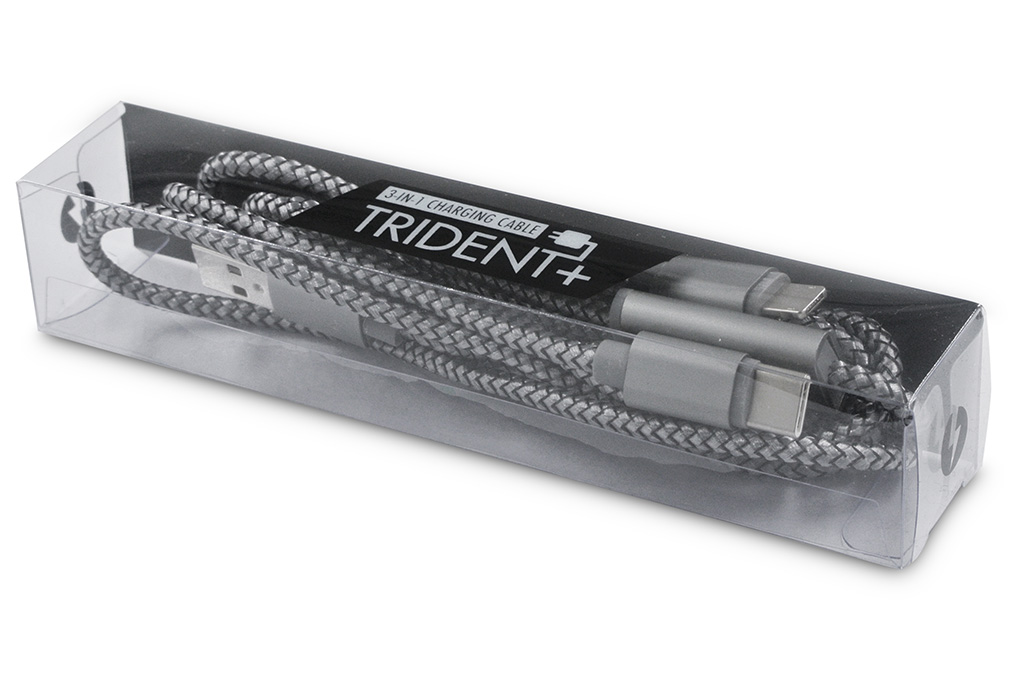 Equipped with USB-A to Micro USB, Lightning, and Type-C outputs, this cable eliminates the need for multiple cords. Whether it’s the latest iPhone, a Samsung smartphone, or portable accessories, Trident provides seamless compatibility, making it a highly valued Custom Branded accessory for travel or office use.