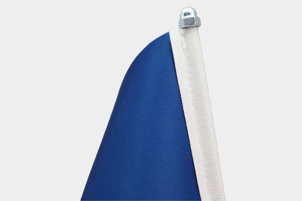 Each Custom Desk & Table Flag set features a 3-piece modular design: the weighted chrome base, the vertical metal pole, and the flag itself. The simple, tool-free assembly allows you to set up your display in seconds. This structure also makes it incredibly easy to disassemble for safe storage or convenient transport between different event locations, while the balanced base ensures a steady, dignified presence wherever it is placed.