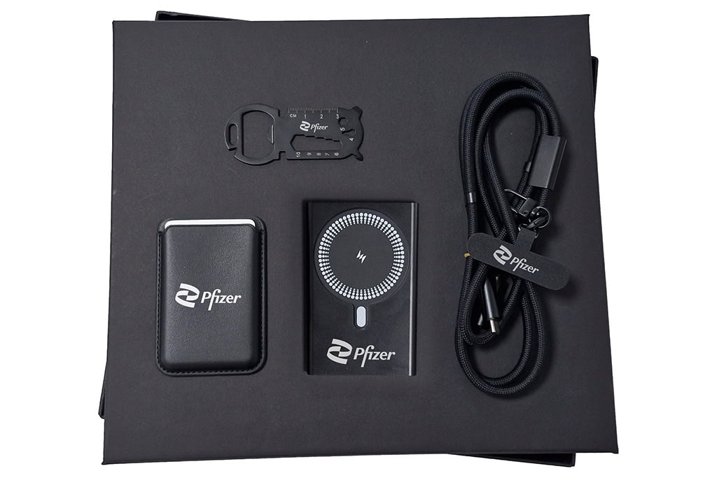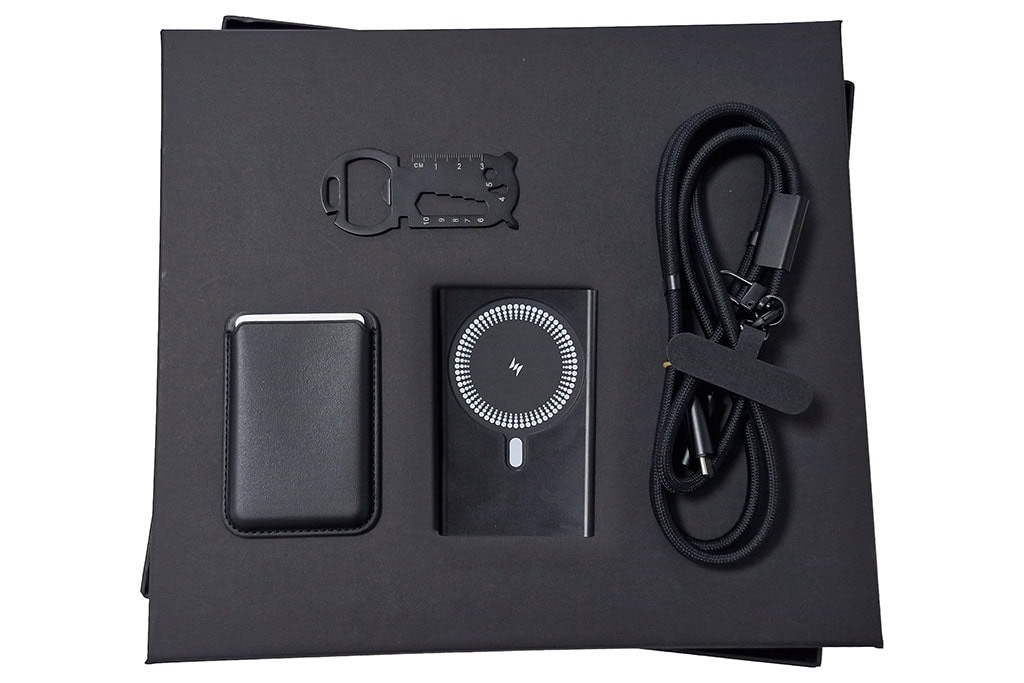 Created to inspire and motivate employees, this set includes a power bank, phone wallet, charging cable, and multifunctional keychain—practical accessories for everyday use. Packaged in a gift box with zigzag paper, it offers both protection and a stylish presentation. More than a gift, it sends a message of recognition and appreciation. All products and the box lid can be branded with your logo, turning it into a powerful promotional gift.